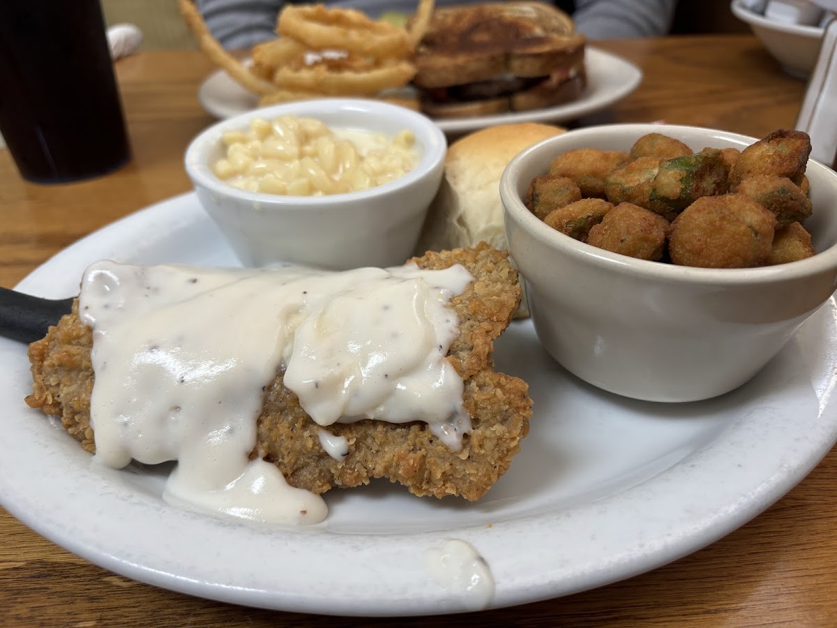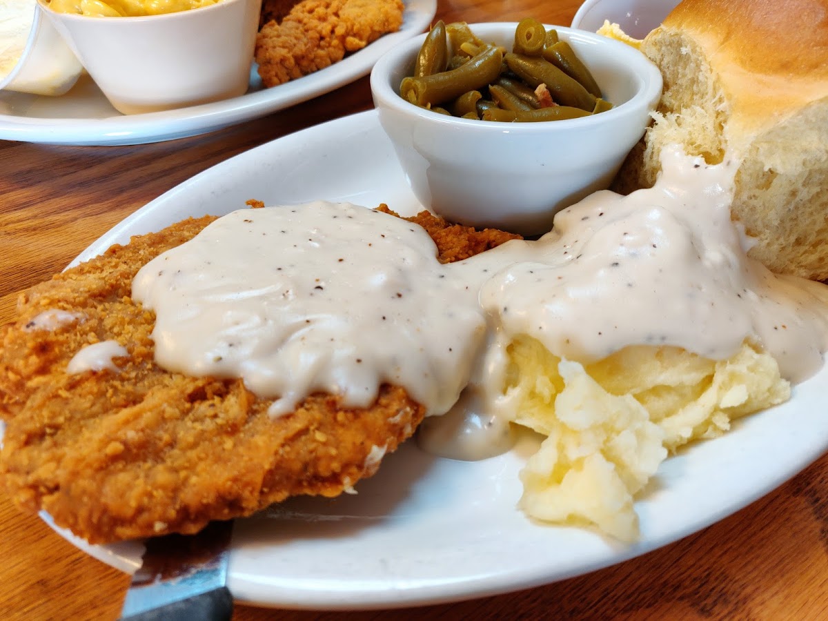 I'm glad we stopped in here. Staff are very friendly and helpful. The food was tasty and good portion sizes(chicken fried chicken, mashed potato with white gravy and corn. Chicken Tenders, mashed potatoes with brown gravy, green beans. Definitely must have pie! I am not sure about that gooseberry pie though . Recommended and we will come back. Thanks, ladies, for allowing me to take the photos.